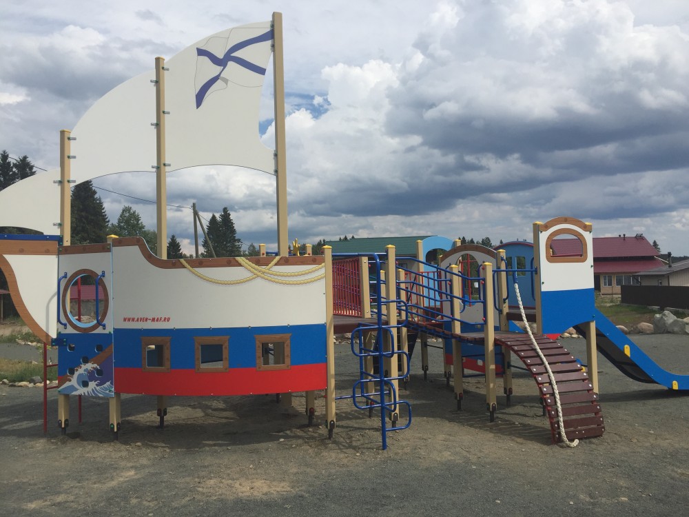 Установлен новый игровой комплекс «Корабль» в парке п. Новая Вилга, благодаря победе проекта в программе «Поддержки местных инициатив».