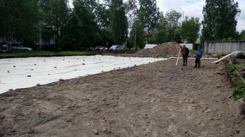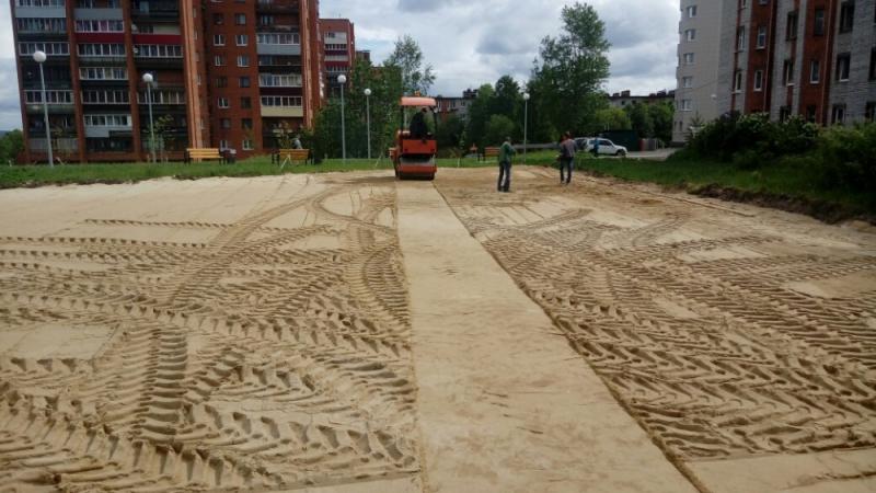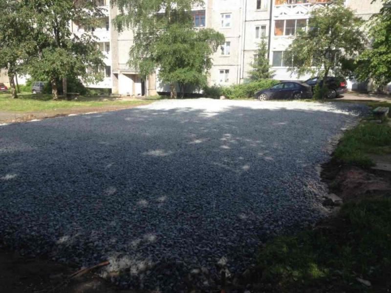 - Если имеются неровности, бугры, большие камни, но двор сухой – мы предложим Вам снять растительный слой, выровнять территорию, уложить геотекстиль (чтобы не прорастала трава), засыпать площадку гранитным отсевом и выровнять её, определив границы при помощи бортовой доски, обработанной от гниения антисептиком.