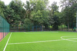 - Сплошное наливное покрытие из резиновой крошки и полиуретанового клея. Оно является самым бюджетным. Оптимальная толщина слоя составляет 15 мм. Оно представлено в двух цветах: кирпичный и зелёный и идеально подходит для спортивных площадок и футбольных полей с возможностью нанесения разметки.