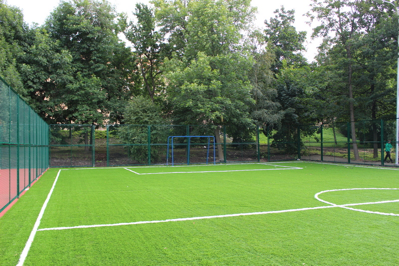 - Покрытие из искусственной травы. Рекомендовано для спортивных площадок и футбольных полей. Предполагает определённую технологию укладки с вчесыванием кварцевого песка в ворс и последующим наполнением резиновой крошкой для предотвращения скольжения.